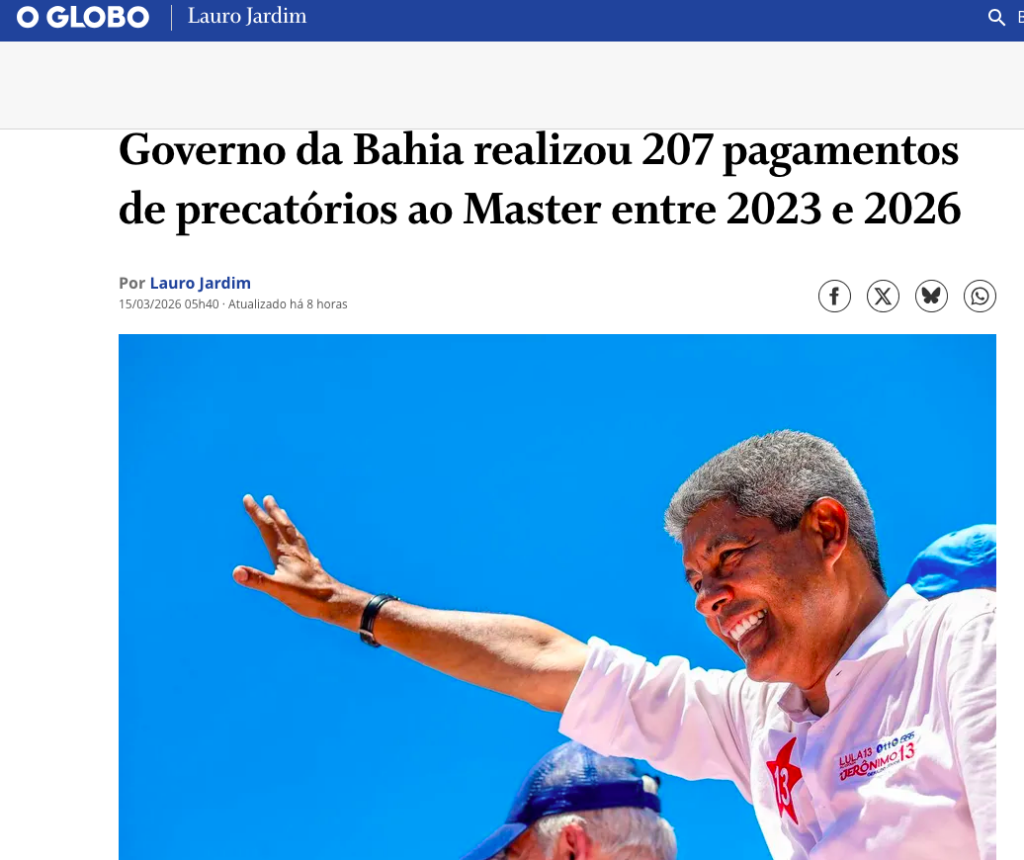 O Banco Master, controlado por Daniel Vorcaro, recebeu R$ 49 milhões do governo da Bahia em operações de antecipação de precatórios do Fundef (Fundo de Manutenção e Desenvolvimento do Ensino Fundamental e de Valorização do Magistério). A informação foi revelada pela coluna de Lauro Jardim, no O Globo, e integra as investigações da Polícia Federal sobre supostas irregularidades financeiras na instituição.
