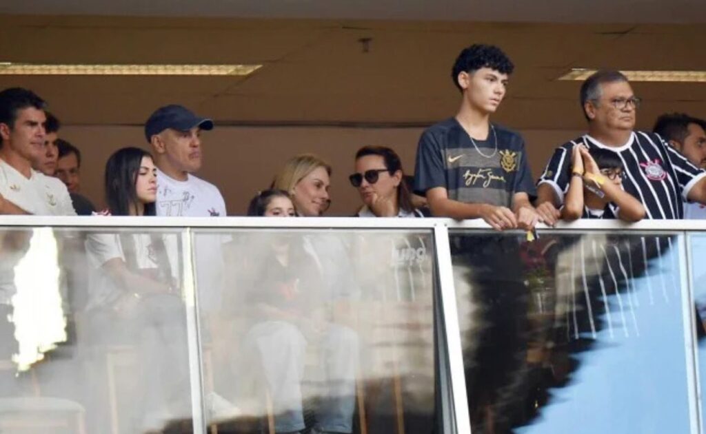 Ambos vestiam camisas do Corinthians — time do coração de Moraes — e acompanharam a vitória do Timão por 2 a 0 sobre o Flamengo, com gols de Gabriel Paulista (aos 26 minutos do primeiro tempo) e Yuri Alberto (no último lance da partida).
