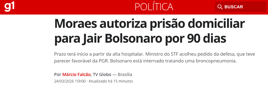 O ministro Alexandre de Moraes, do Supremo Tribunal Federal (STF), autorizou nesta terça-feira que o presidente Jair Bolsonaro (PL) retorne ao regime de prisão domiciliar por um período de 90 dias. A decisão tem caráter temporário e visa permitir a recuperação de uma broncopneumonia, com o prazo começando a contar a partir da alta hospitalar. Após os três meses, o magistrado reavaliará os critérios para manutenção ou não da medida, de acordo com a matéria do G1.