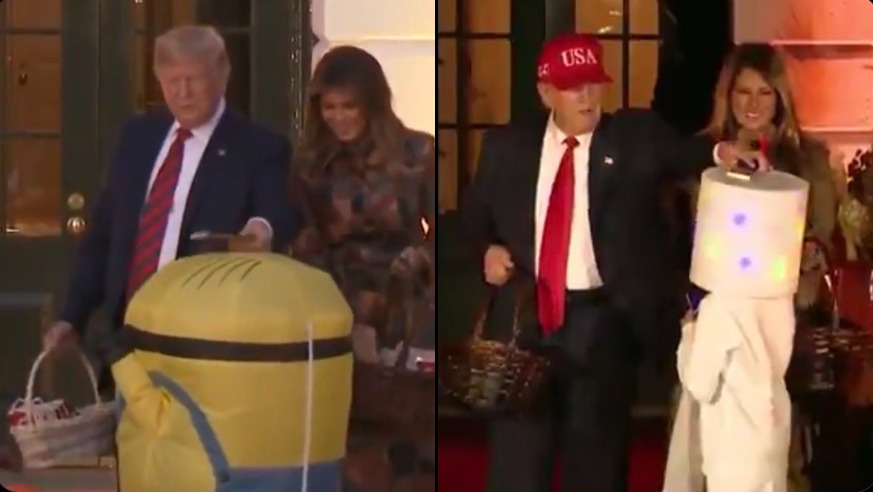 Em 2019, o presidente colocou uma barra de chocolate Hershey’s na cabeça de uma criança vestida como um personagem do filme “Minions”. Este ano, ele fez o mesmo com uma criança fantasiada do DJ Marshmello.