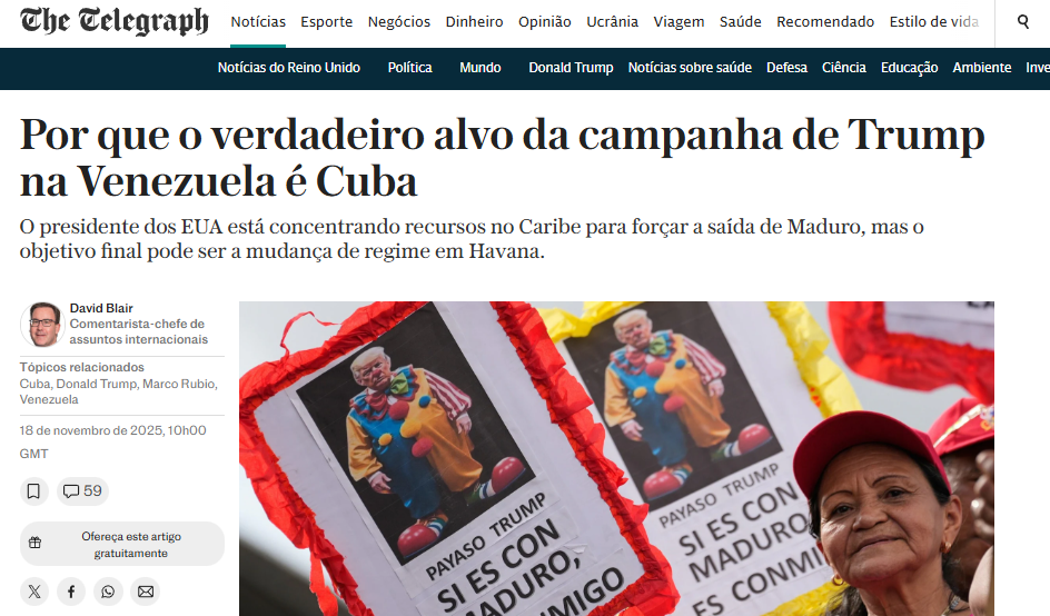 Isso foi publicado pelo veículo de comunicação britânico The Telegraph, que, por meio de uma reportagem especial intitulada: POR QUE O VERDADEIRO ALVO DA CAMPANHA DE TRUMP NA VENEZUELA É CUBA.