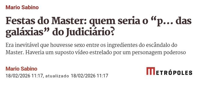 A coluna do jornalista Mario Sabino, publicada no portal Metrópoles, traz novas revelações e insinuações sobre o escândalo do Banco Master, agora ampliando o foco para supostas festas promovidas pelo ex-banqueiro Daniel Vorcaro que misturariam autoridades dos Três Poderes, corrupção e elementos de luxúria.