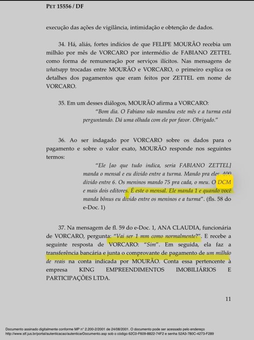 As apurações apontam que esses repasses ocorreram por meio de intermediários ligados ao grupo “A Turma”, coordenado pelo auxiliar Luiz Phillipi Mourão (“Sicário”), e podem configurar crimes de obstrução de justiça, corrupção ativa e lavagem de dinheiro.