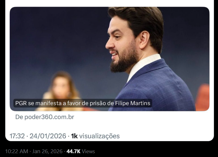 Filipe Martins, ex-assessor internacional do governo Jair Bolsonaro (PL), encontra-se injustamente preso preventivamente desde o início de janeiro de 2026, após determinação do ministro Alexandre de Moraes.