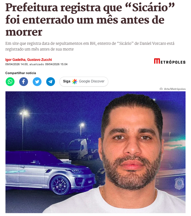 Documentos revelam que assassino de aluguel foi enterrado pela Prefeitura de BH um mês antes da data registrada como morte e que certidão de óbito não informa a causa da morte; casos alimentam suspeitas de fraudes e manipulação de registros
