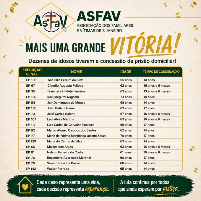 A libertação deste grupo se soma a outras liberações pontuais que vêm ocorrendo nos últimos meses, geralmente por meio de progressão para liberdade condicional. Para os apoiadores da causa, cada nome que sai da prisão representa um passo importante na luta por revisão das penas aplicadas após os atos em Brasília.