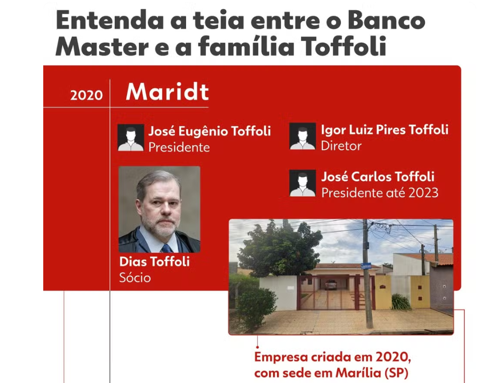 Em nota publicada nesta quinta-feira, Toffoli detalhou sua participação societária na empresa Maridt. Além disso, negou qualquer vínculo pessoal ou financeiro com o banqueiro Daniel Vorcaro.