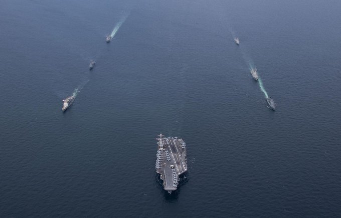 De acordo com Pentágono, o grupo de ataque Gerald Ford foi destacado à região da América Latina. Esse grupo de ataque é composto pelas seguintes embarcações e aeronaves de ataque, além de veículos de monitoramento e suporte: