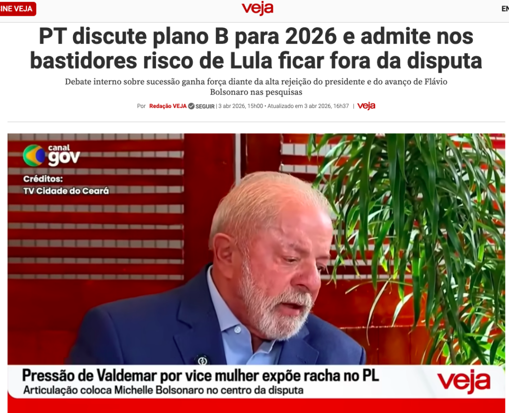 O Partido dos Trabalhadores (PT) já discute internamente um plano B para a eleição presidencial de 2026, admitindo nos bastidores o risco de o petista Lula da Silva não disputar a reeleição, de acordo com a matéria da Revista Veja.
