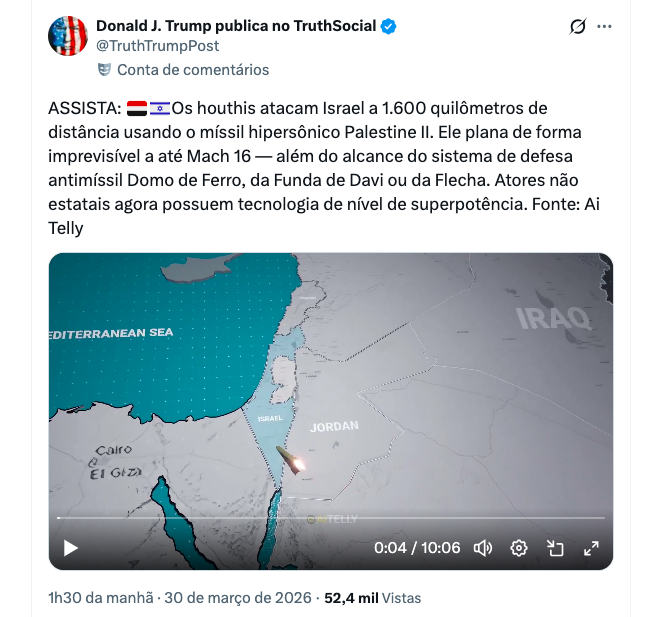 Arma atinge velocidade de até Mach 16 com trajetória imprevisível, superando Domo de Ferro, Funda de Davi e Flecha; rebeldes iemenitas demonstram capacidade avançada em meio à escalada no Oriente Médio