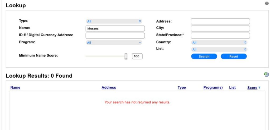 O nome do ministro Alexandre de Moraes foi retirado da lista “OFAC”, confira abaixo: