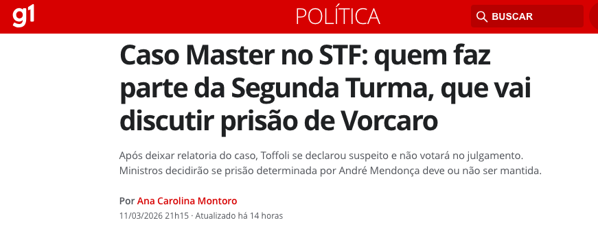 Este é o primeiro julgamento colegiado no STF relacionado ao Caso Master, que já envolveu prisões, quebras de sigilo, tentativas frustradas de venda de ativos ao BRB e impactos no sistema financeiro brasileiro.