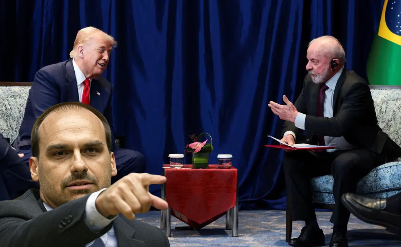 O deputado federal Eduardo Bolsonaro (PL-SP) postou na sua conta da rede social X trecho da entrevista coletiva antes da reunião entre o presidente dos Estados Unidos, Donald Trump, o petista Lula da Silva, em que Trump é questionado sobre o ex-presidente Jair Bolsonaro (PL). ‘Lula e...