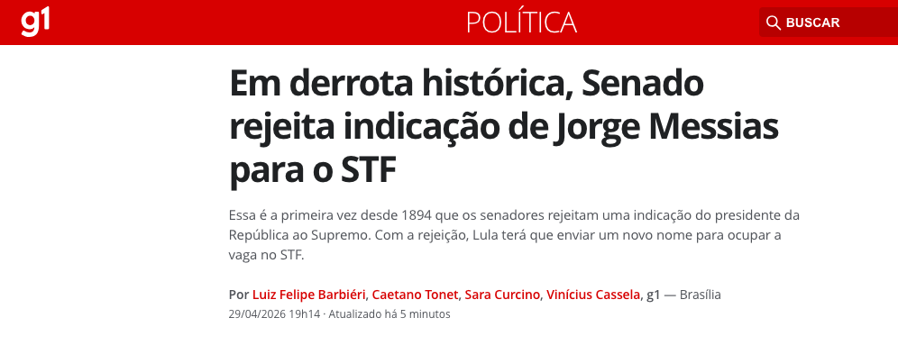 A rejeição marca um ponto de inflexão na relação entre o governo e o Congresso, evidenciando que a base aliada não conseguiu assegurar os votos necessários para a confirmação do então Advogado-Geral da União na Corte máxima do país.