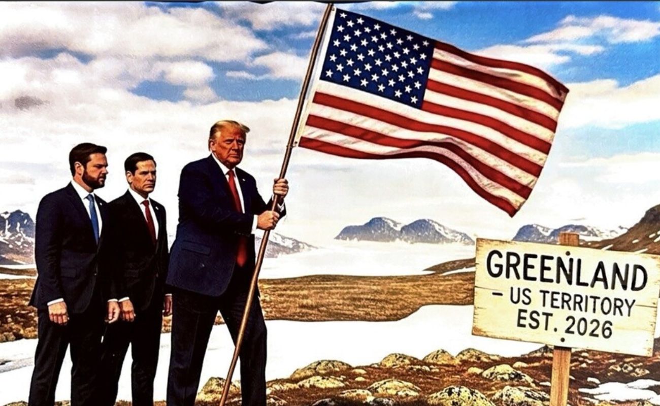 Horas antes, outra montagem de IA mostrava o próprio Trump hasteando a bandeira dos EUA em uma paisagem ártica nevada, ao lado do vice-presidente J.D. Vance e do secretário de Estado Marco Rubio. Uma placa na imagem declarava: “Groenlândia: território dos EUA estabelecido em 2026”. O gesto simbólico alimenta a polêmica sobre a anexação da Groenlândia, território autônomo da Dinamarca que Trump considera essencial para a segurança nacional americana, especialmente contra influências russa e chinesa no Ártico.