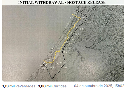 O presidente Trump fez um post dizendo que Israel concordou iniciar o processo de recuo de algumas posições no interior da Faixa de Gaza.
