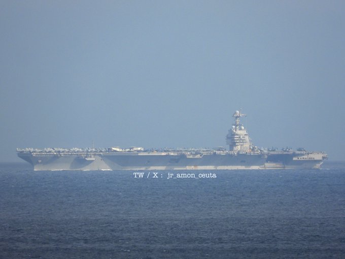 Os porta-aviões passou pelo estreito de Gibraltar. A sua passagem pelo estreito foi captada hoje de manhã a partir de Tarifa, na Espanha. Como é uma área de maior tráfego marítimo, a embarcação pesada oculta a velocidade para 12,8 nós, mas no meio do Mediterrâneo segue cerca de 30 nós, o que significa que provavelmente voltará a acelerar agora no Atlântico. Se continuar nesse ritmo, chegará à costa da Venezuela até por volta de domingo ou segunda.