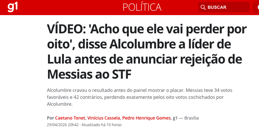 O presidente do Senado, Davi Alcolumbre (União-AP), demonstrou total domínio do plenário ao prever, com precisão, o resultado da votação que rejeitou a indicação de Jorge Messias ao Supremo Tribunal Federal (STF).