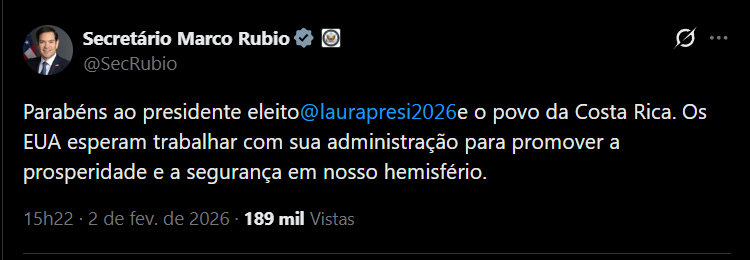 Marco Rubio parabenizou Laura Fernandez pela vitória, confira: