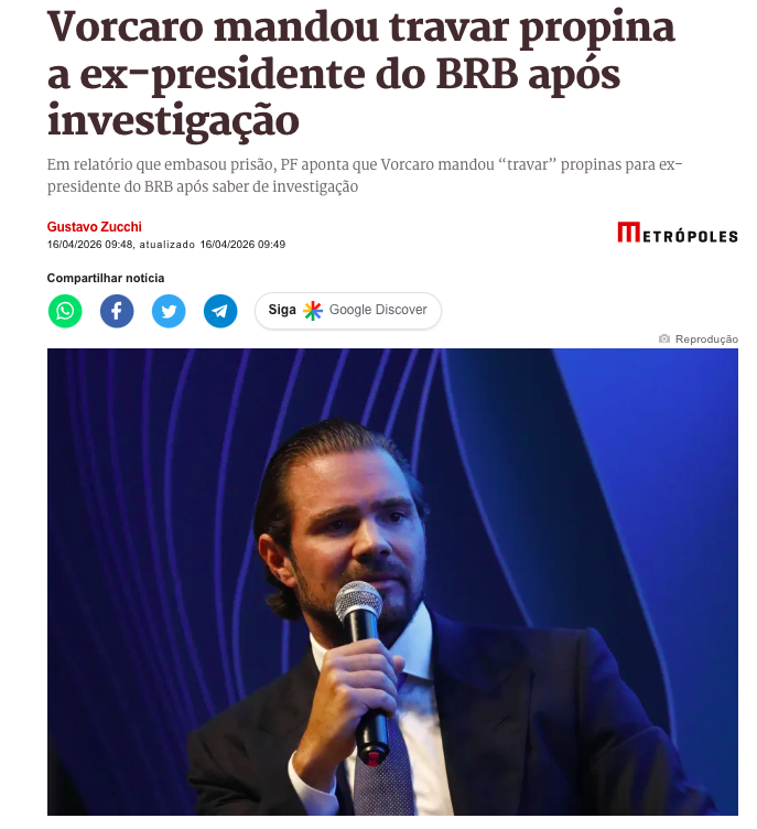 O empresário Daniel Vorcaro, dono do Banco Master, determinou a paralisação dos pagamentos de propina ao ex-presidente do Banco de Brasília (BRB), Paulo Henrique Costa, logo após ser informado da existência de uma investigação sigilosa da Polícia Federal, de acordo com a matéria do Metrópoles.