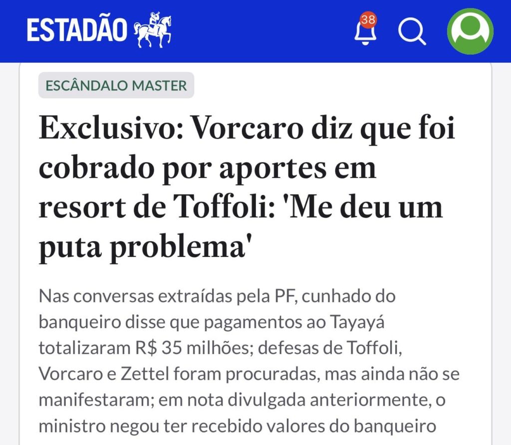 De acordo com reportagem do Estadão, Vorcaro desabafou em conversa com pessoas próximas sobre a cobrança que recebeu: “Me deu um puta problema”